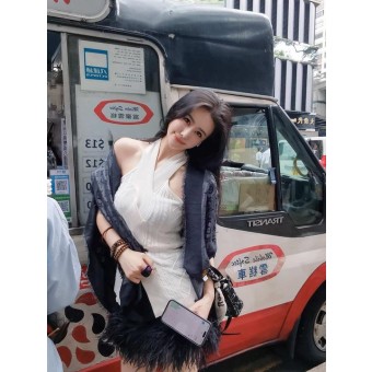 在线独家女式刺绣F-box标志后开叉连衣裙